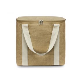 The Jute Cooler Bag is the perfect accessory for your next social outing. With a 19L capacity, it will store all your favourite picnic drinks and snacks. The cooler bag interior helps keep food and drinks cool and fresh. It has a zippered top closure, a jute front pocket and natural cotton carry handles.Dimensions: 32cm x 32cm x 19 Capacity: 19 litres