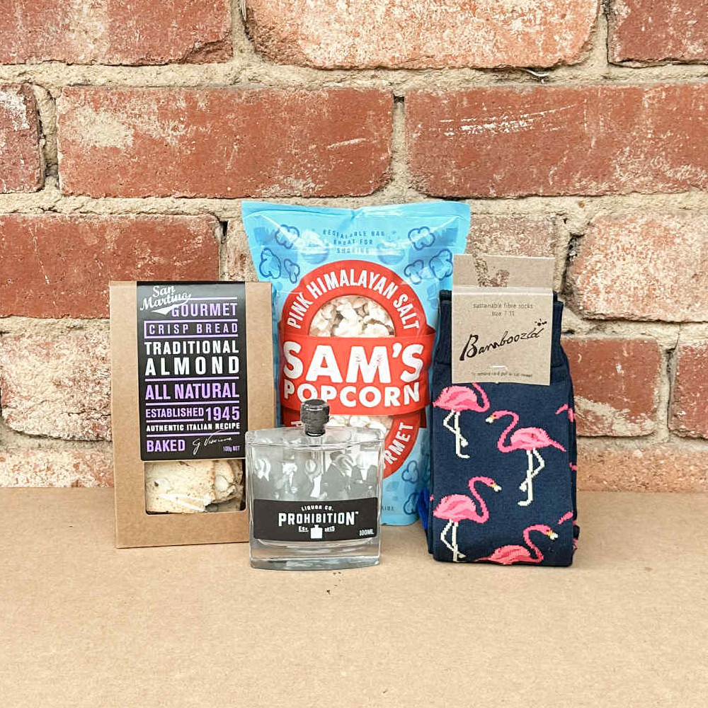 Treat Dad this Father’s Day with the Dirty Harry Gift Box, a carefully curated selection made for him to enjoy. Featuring a bottle of smooth Prohibition Gin, a pair of stylish Bamboozld socks, and a mix of tasty snacks including Continental Taralli Almond Bread and Sam’s Popcorn with Pink Himalayan Salt, this gift box is the perfect way for Dad to relax and feel appreciated on his special day.