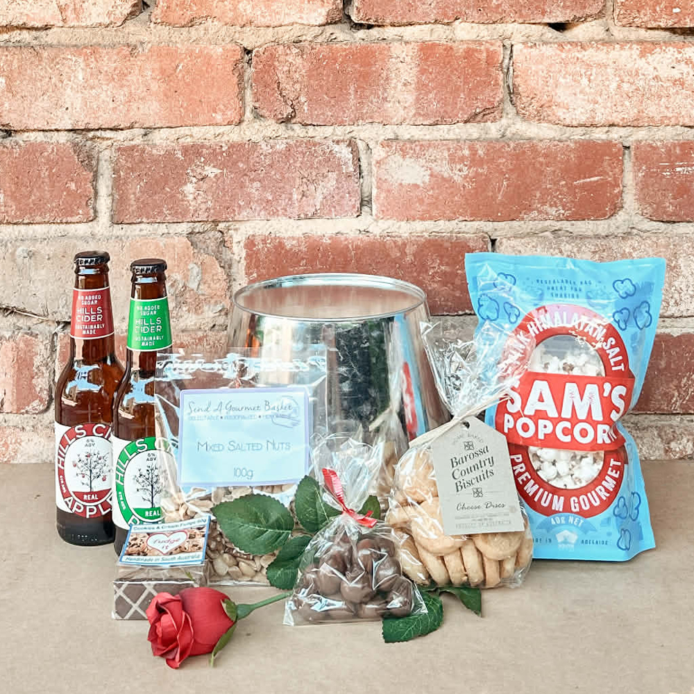 A bold yet sweet gift for your Valentine, the Beauty and the Beast Hamper is the perfect mix of indulgence and charm. Featuring two SA boutique beers or ciders, this hamper is complemented by savoury cheese biscuits and mixed salted nuts for the perfect pairing.